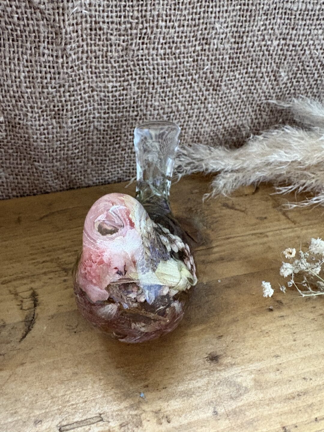 11cm Long-Tailed Bird Ornament – Custom Made with Pre-Dried Flowers