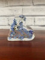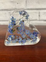 This stunning 7cm resin heart is handcrafted with real dried forget-me-not flowers.