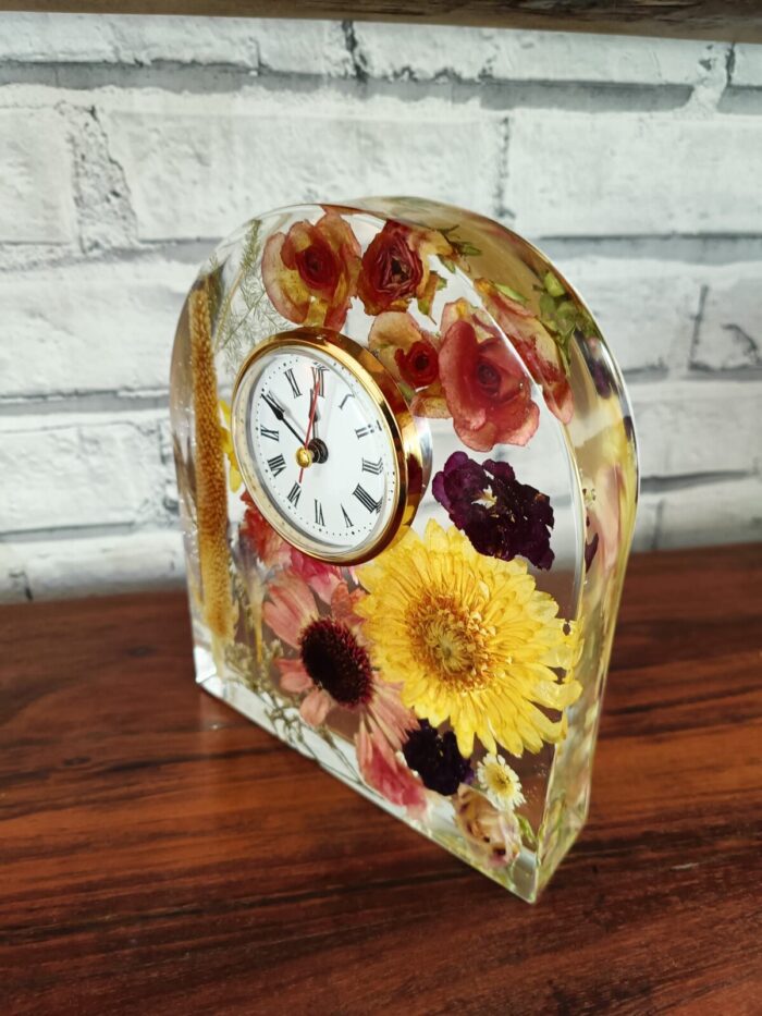 Each Flower Preservation Resin Arch Clock is a bespoke creation, attentively crafted with attention to detail. You have the freedom to choose the flowers that hold personal significance—whether it's roses, gerberas, or other cherished blooms.