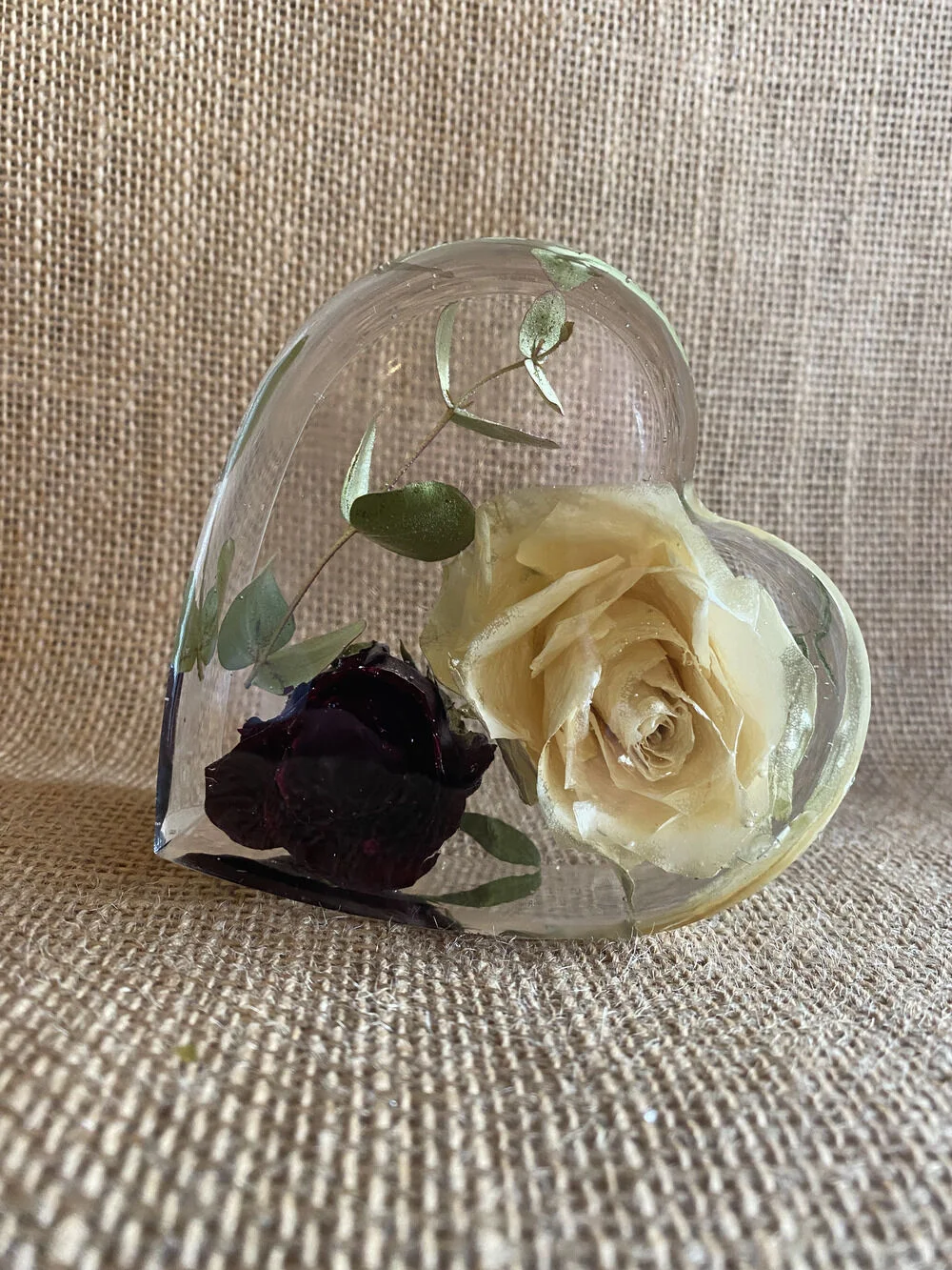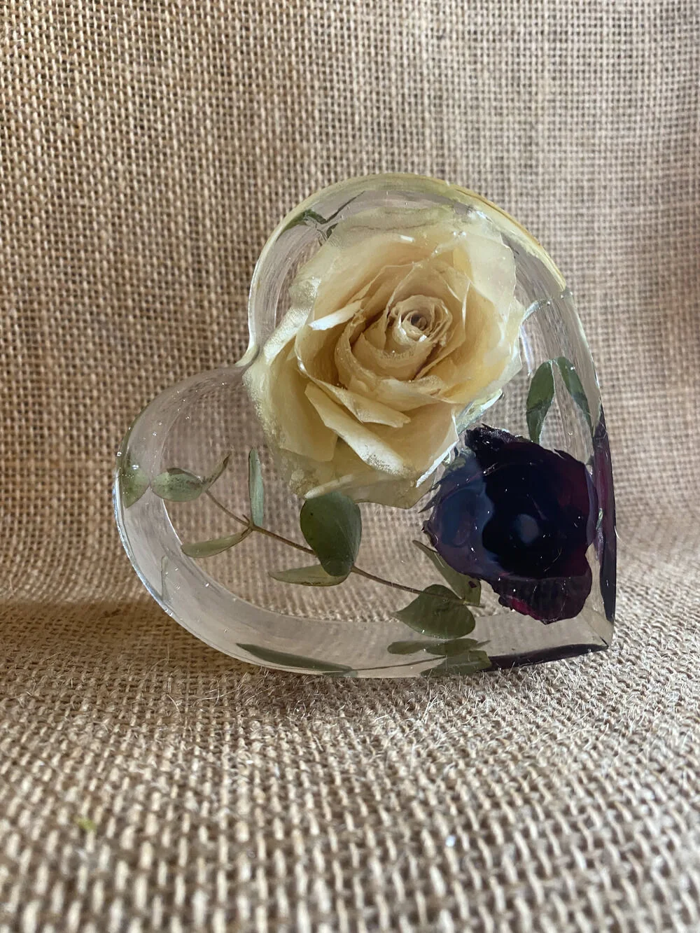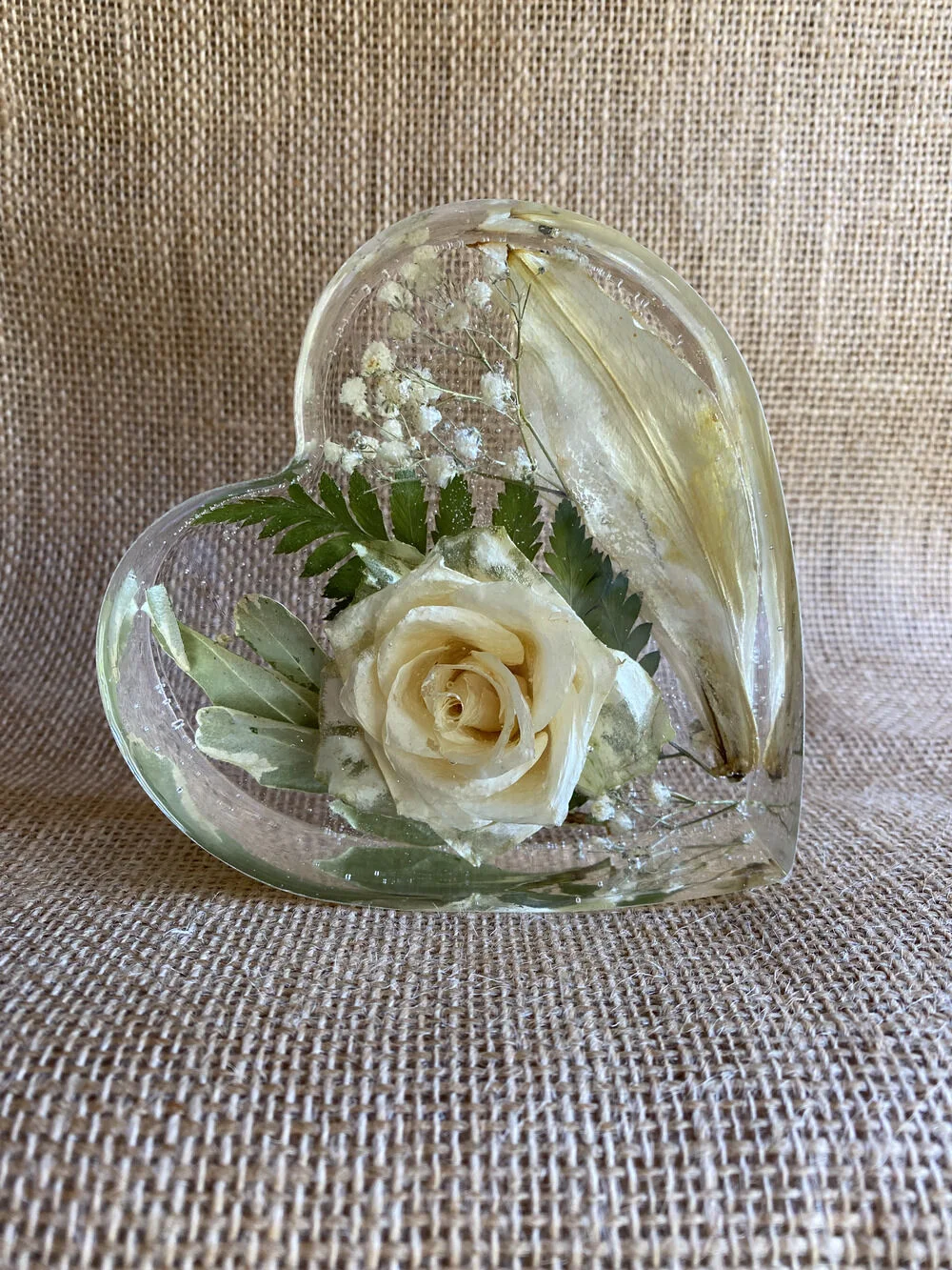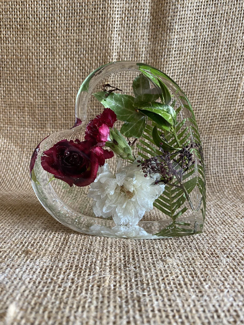 The Resin Heart Flower Preservation is a unique way to preserve the beauty and significance of your wedding or funeral flowers.