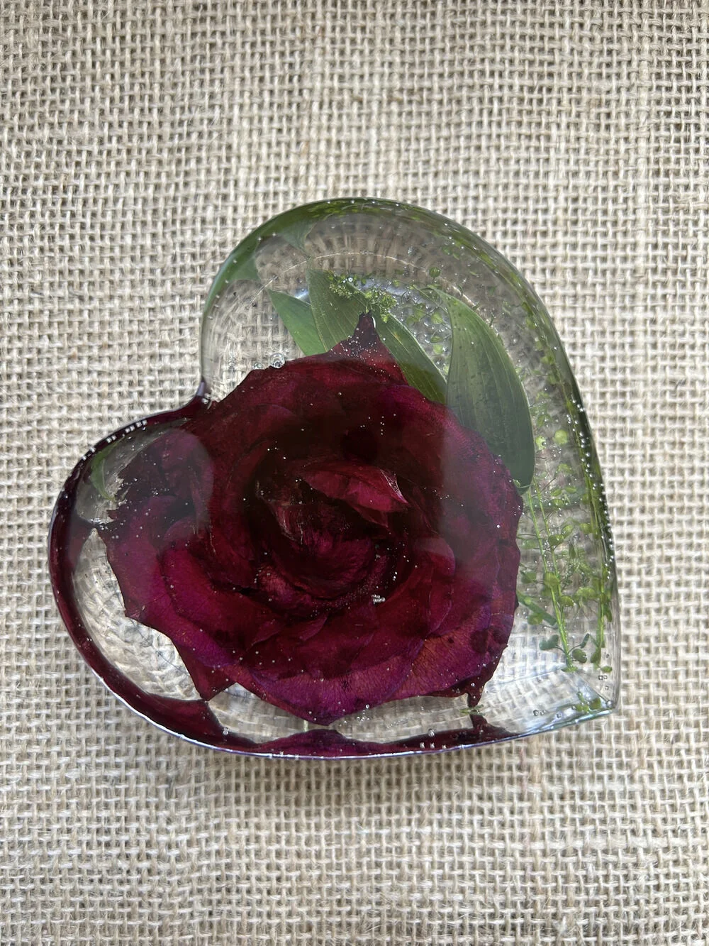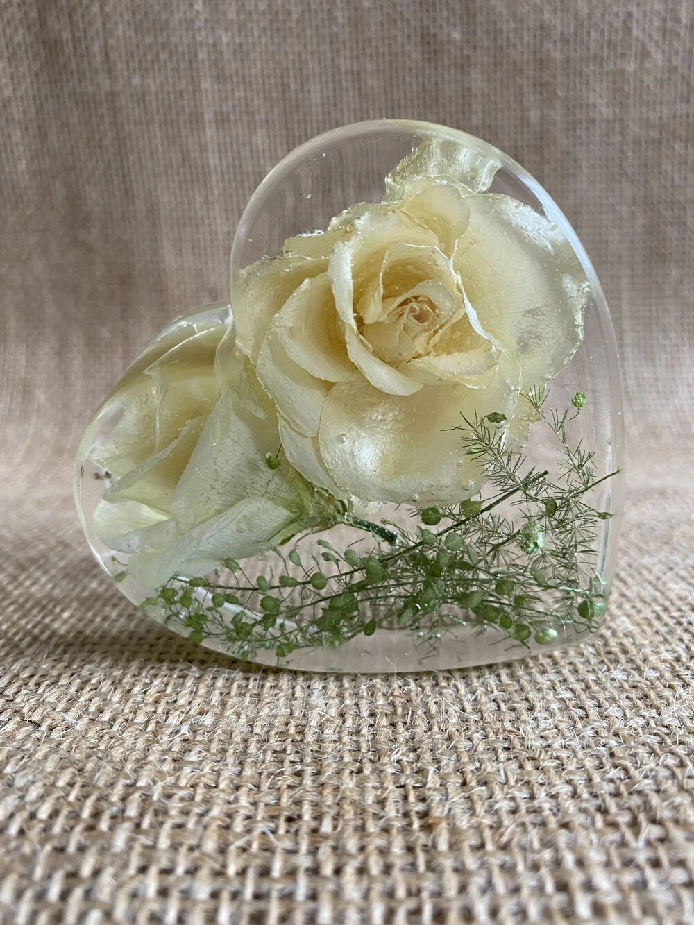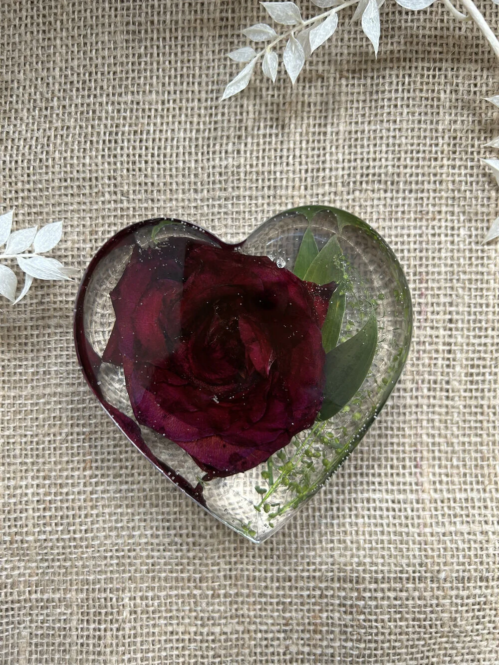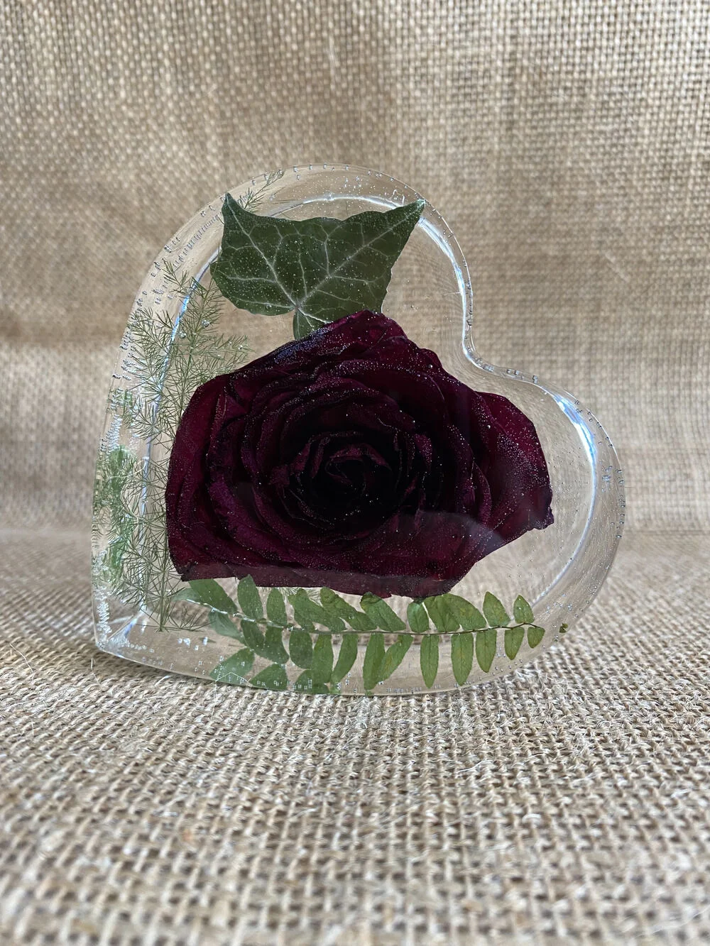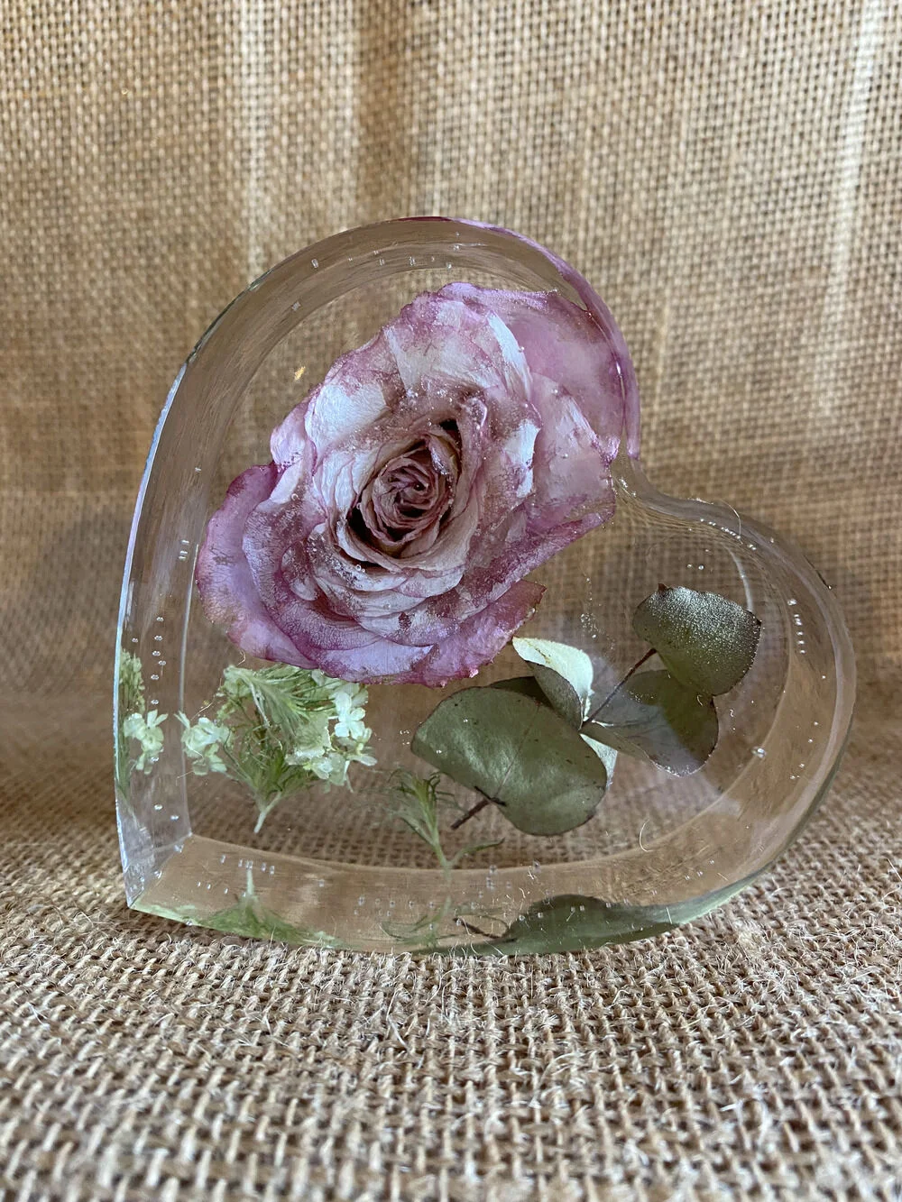The Resin Heart Flower Preservation is a unique way to preserve the beauty and significance of your wedding or funeral flowers.
