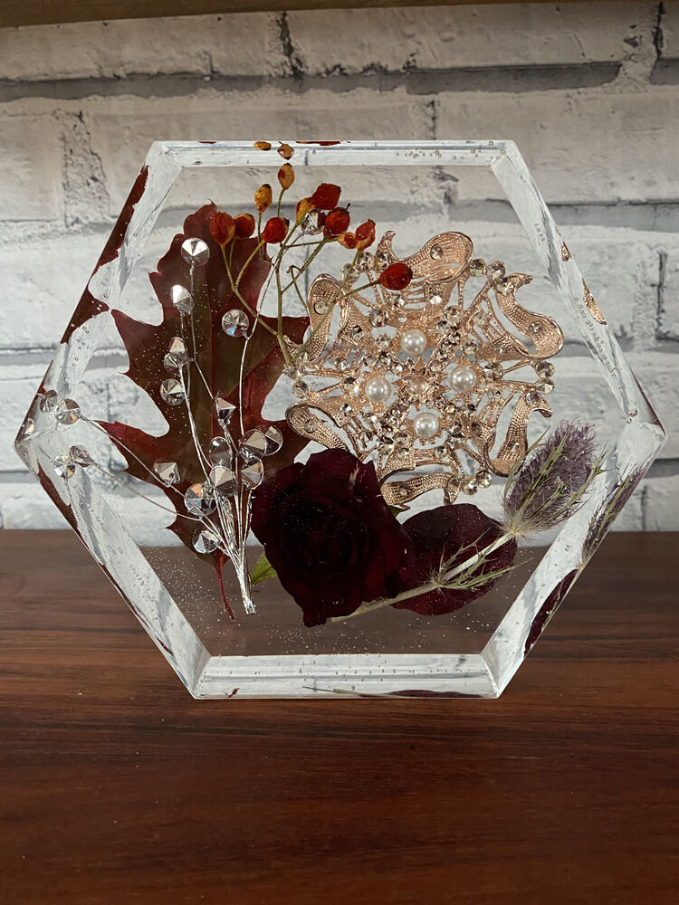 Our Resin Hexagon Flower Preservation is the perfect way to capture the beauty and essence of your beloved wedding or funeral flowers. With a generous size of 20cm, this preservation method allows you to create a lasting keepsake of your most treasured floral arrangements.