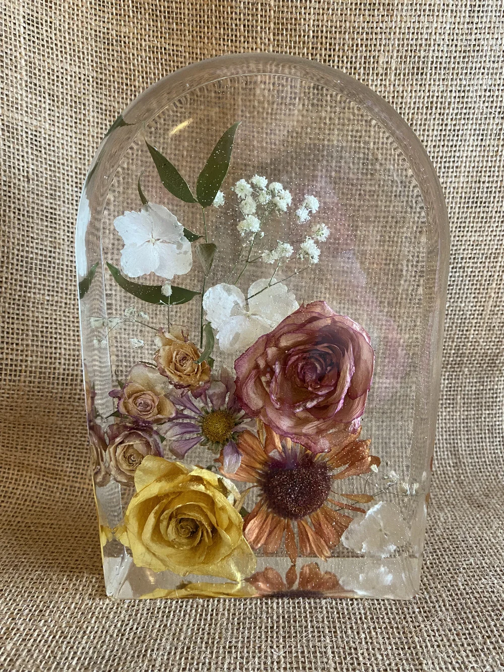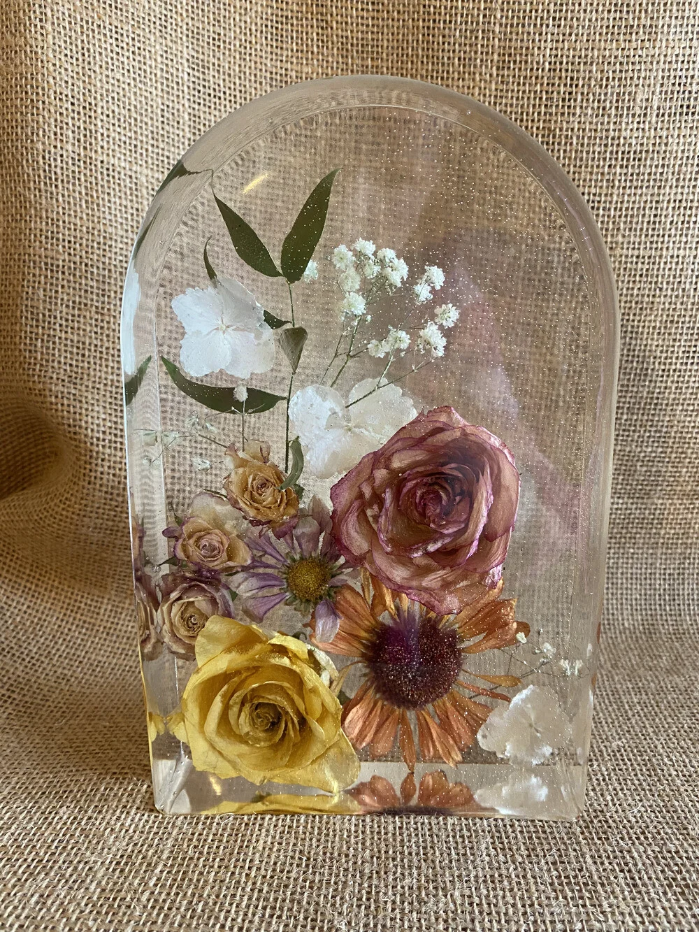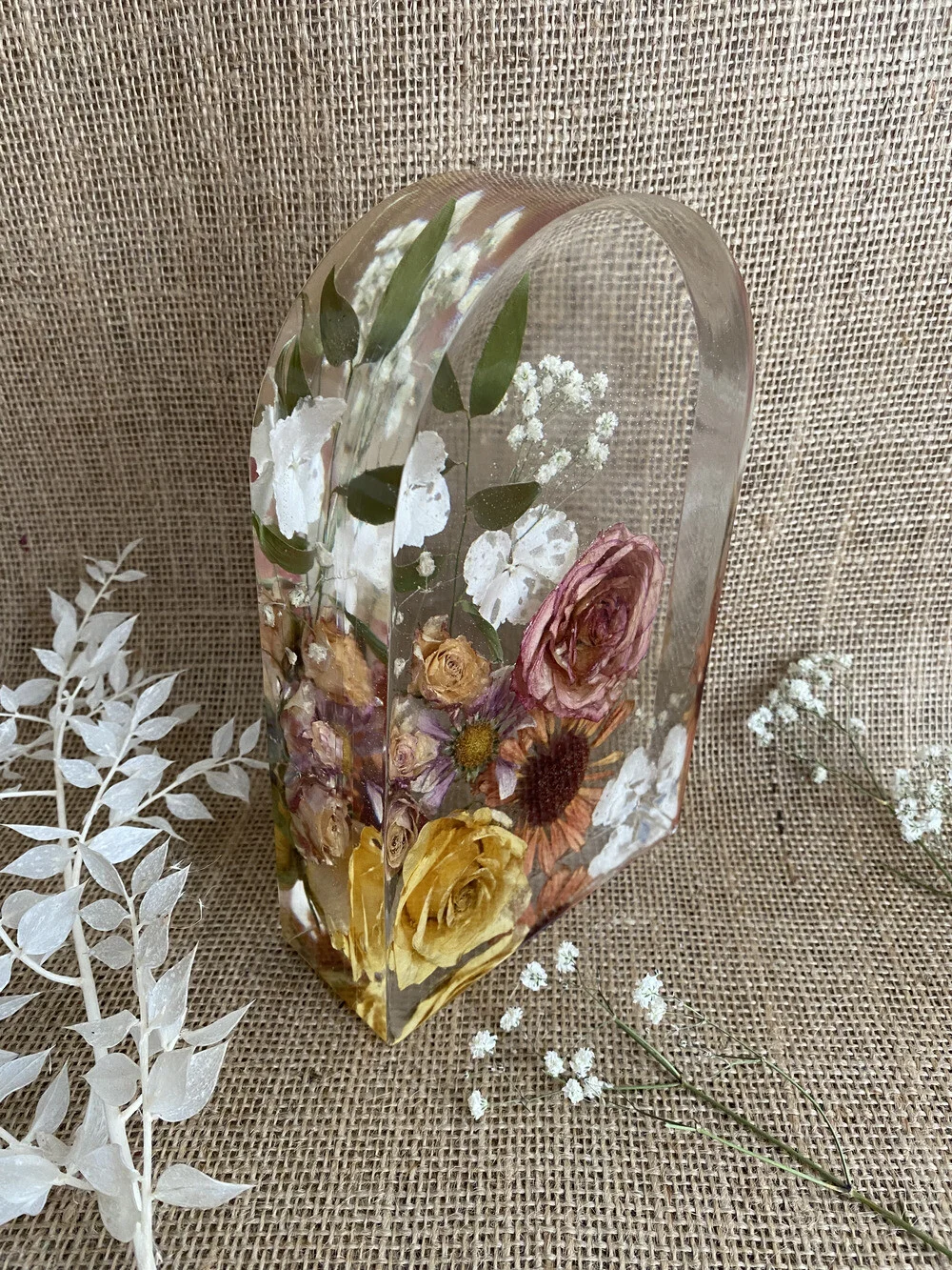 Unveil the mesmerizing allure and essence of your cherished wedding or funeral flowers with our Resin Arch Flower Preservation. Skillfully crafted in a captivating arch design, this extraordinary preservation technique empowers you to create an everlasting tribute to your most treasured floral arrangements.