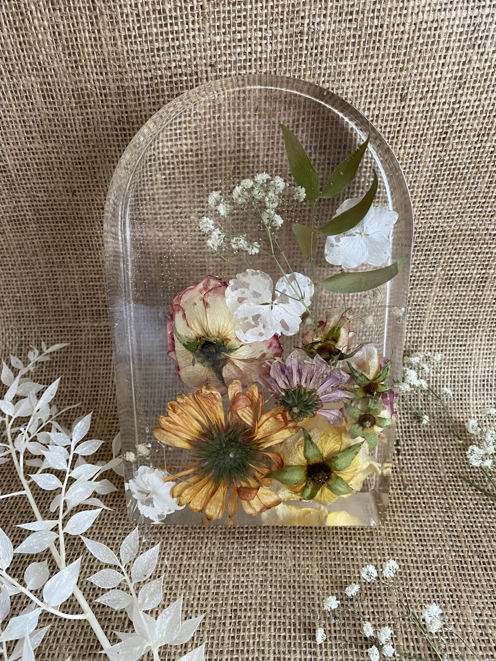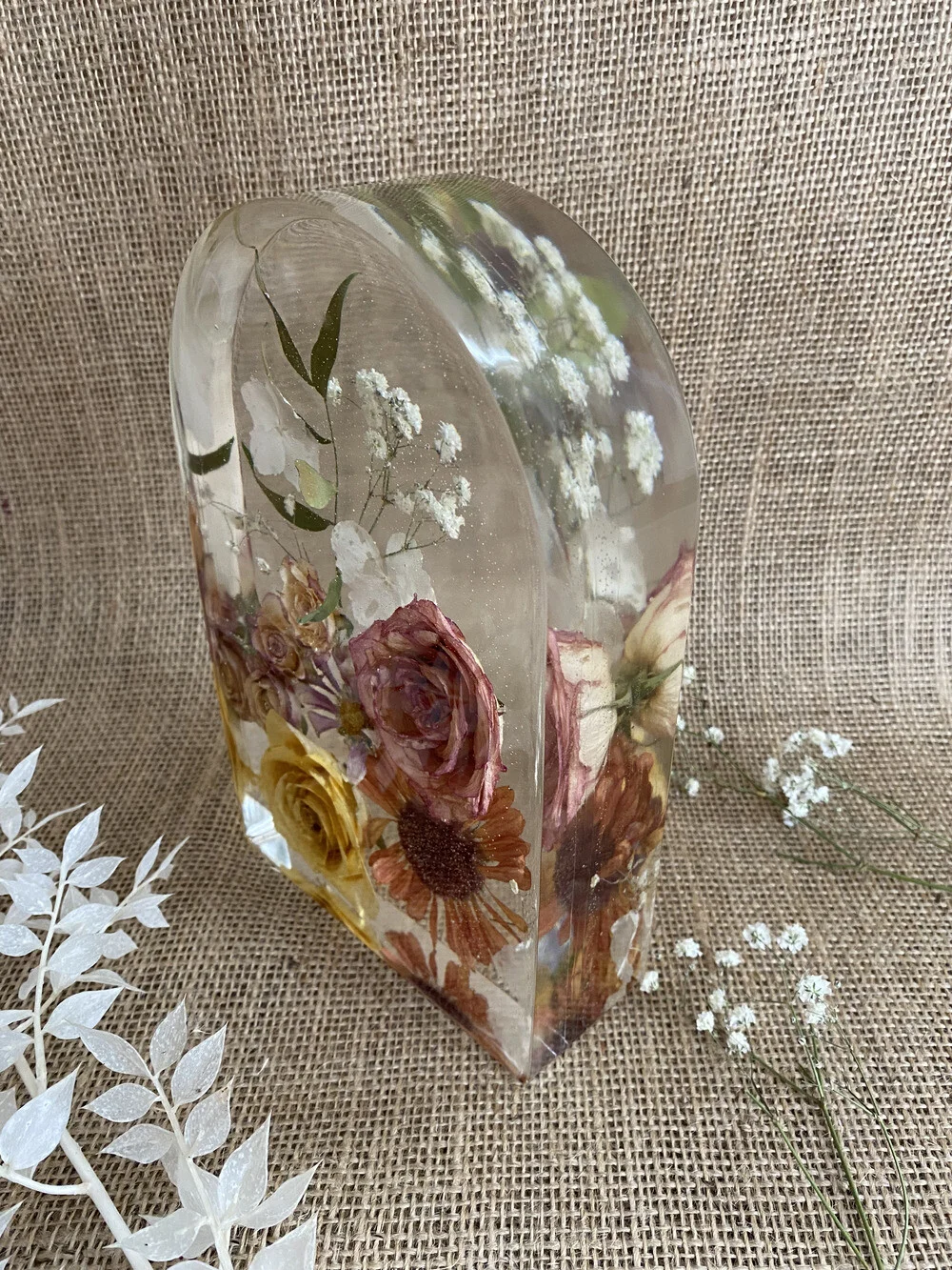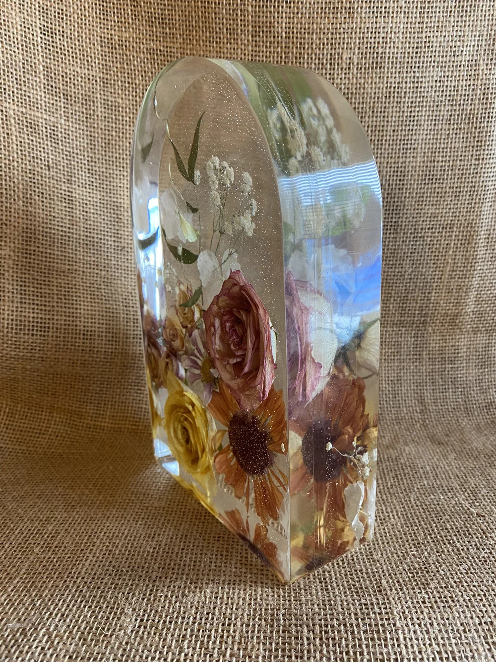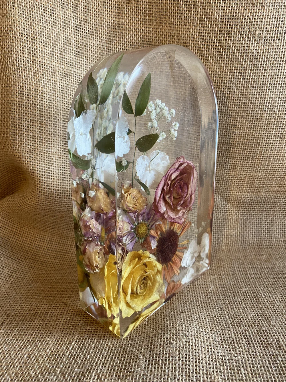 Unveil the mesmerizing allure and essence of your cherished wedding or funeral flowers with our Resin Arch Flower Preservation. Skillfully crafted in a captivating arch design, this extraordinary preservation technique empowers you to create an everlasting tribute to your most treasured floral arrangements.